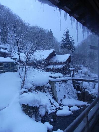素晴らしい絶景の露天風呂。渓流沿いにある露天風呂からの眺めは本当に素晴らしいです。ただしお風呂に行くまでの道のりが寒いし足元は滑りそうだしでちょっと大変です。。。それでもやっぱり一面銀世界の雪見風呂が楽しめる雪の季節がオススメです。