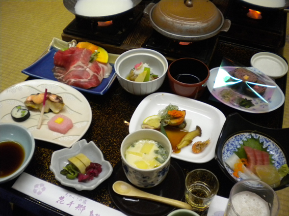 お部屋は和洋室であまり布団が好きではないのでこちらでOK。部屋から眼下に鬼怒川の眺めが望めました。お風呂は泉質は悪くないのですが、お風呂屋さんみたいでもうちょっと風情があってもよいかな。食事は大広間のようなところでいただきました。品数はそんなに多くありませんがこのお値段なら十分です。贅沢言えません。(笑)