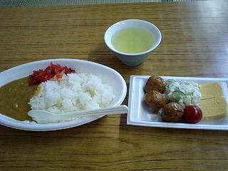 食事はカレーとおかずでした。山小屋のご主人は親切で色々教えて