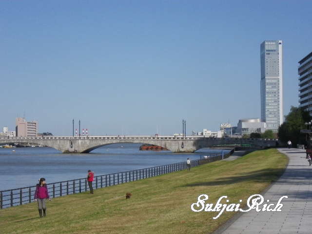 会議で行ったことのあるホテル日航新潟が、やすらぎ堤の向こにそびえています。泊まったことがないですが、客室からの眺めはさぞかしいいでしょうね。機会があれば泊まってみたいものです。しかしホテル周辺には何もないので、来客たちはどうしても駅周辺に泊まってしまうのですがね・・・