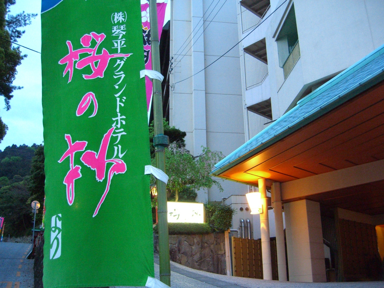 参道の最後にあり金毘羅宮に位置しています。夕食、朝食は普通の旅館で出る料理でした。温泉施設は露天風呂と内風呂があります。露天風呂は小石がたくさん置いてあり、屋根がある湯船もあります。規模、サービス共に中規模クラスのホテルです。