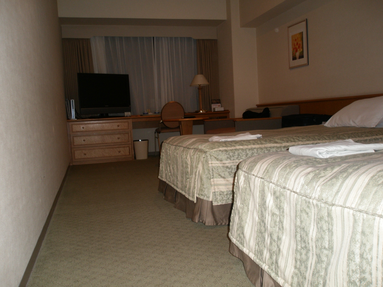 ホテルの設備は古い気がしましたけど掃除が行き届いており清潔でした。航空券とのパックでシングルで予約しましたが実際の部屋はツインのシングルユースで部屋も広く、疲れていた私にはとてもありがたかったです。バスタブも広くゆっくり休めました。
