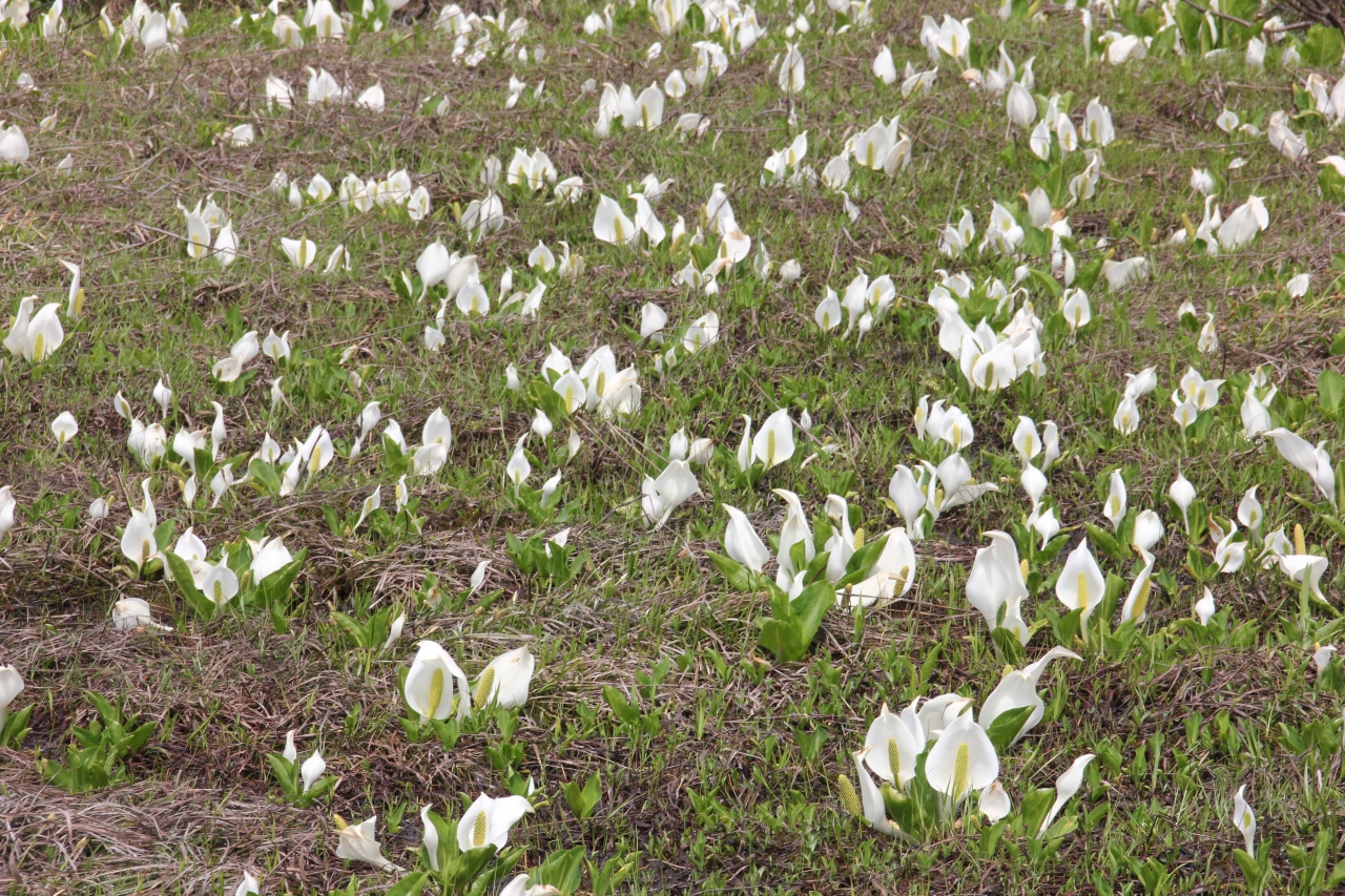 尾瀬ヶ原より標高が高いので水芭蕉がこちらのほうがきれいに群生しており、ロッジの周辺でも充分鑑賞できました。