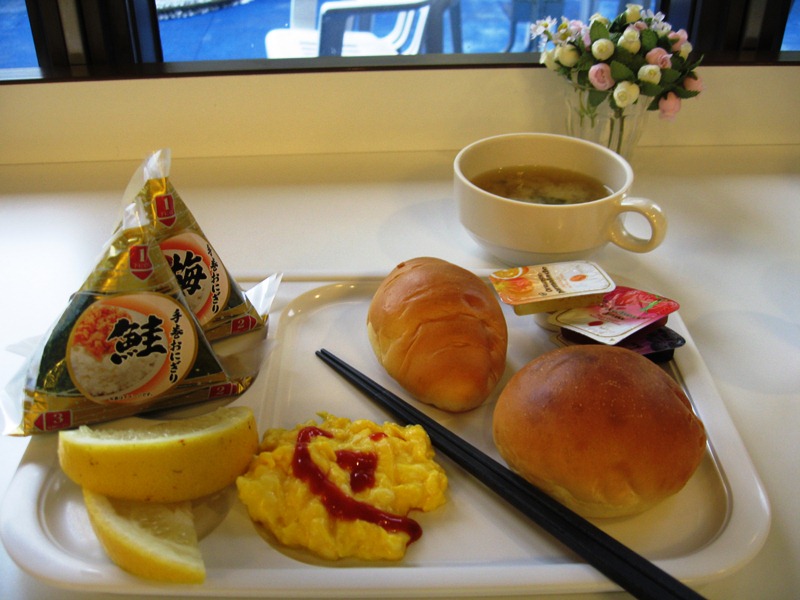 朝ごはんは無料サービスで、おにぎり、パン、卵料理、スープなどがありました。