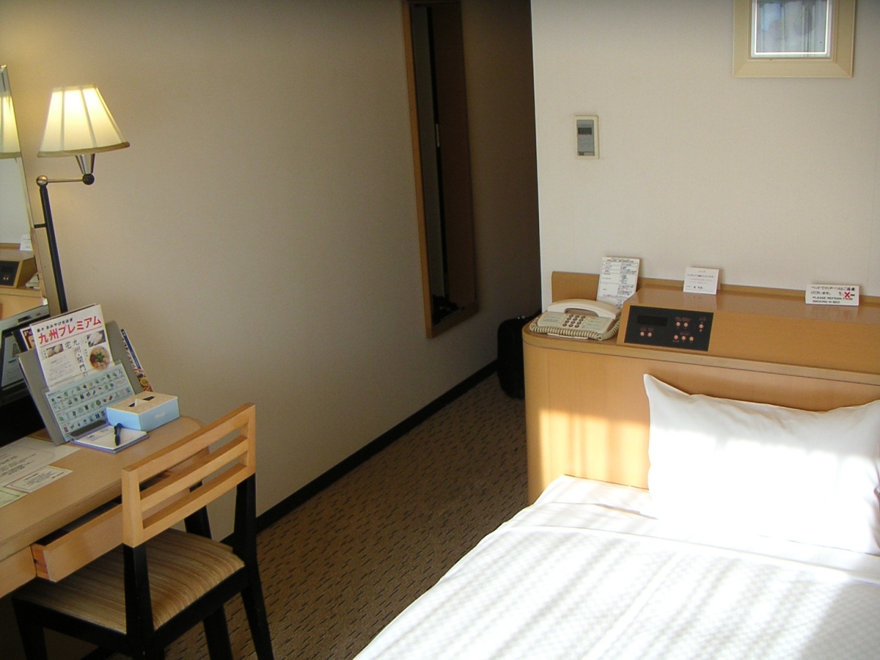 客室は喫煙部屋でしたが、タバコ臭い感じはしませんでした。ただ、廊下はタバコ臭かったです。大き目のスーツケースを広げるには狭い部屋かと思いますが、ビジネスや一人旅の方には十分な広さかと思います。