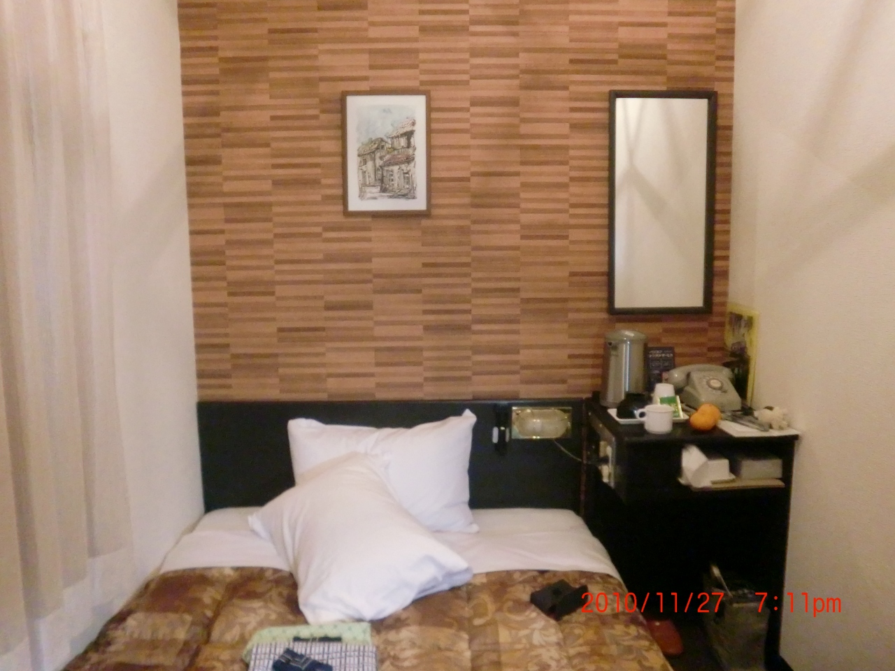 宍道湖の夕日を見るために、松江に1泊しました。ごらんのとうり、部屋は狭いのですが寝るだけなら、問題ありません。なんといっても、1泊2人で¥6.800は、安い!!!それに簡単な、朝食弁当付でした。自分たちには、ちょうどいい量でした。