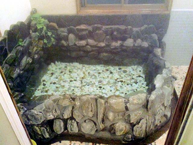 浴室は二つあるが、ともに貸切で利用される。源泉は湯本温泉館下源泉。清澄なアルカリ性単純温泉が適温のかけ流しで嬉しくなる。
