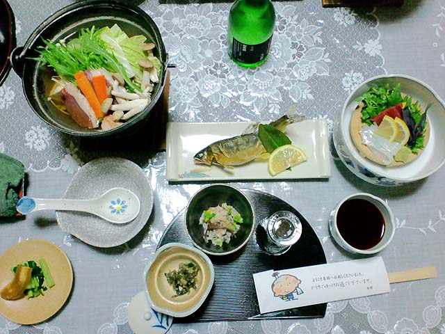 夕食も朝食も宿泊料金では考えられないほど、かなりいいものが出てきて大満足であった。