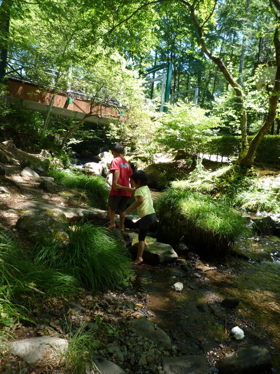 リゾート内に、温泉があり、川が流れていて、小さな子が十分水遊びを楽しめるくらいの川があります。