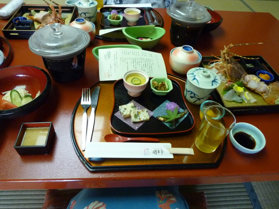 お食事はお部屋食で、種類も量もたくさんありました。伊勢海老も一人1匹お造りがでて、嬉しかったです。