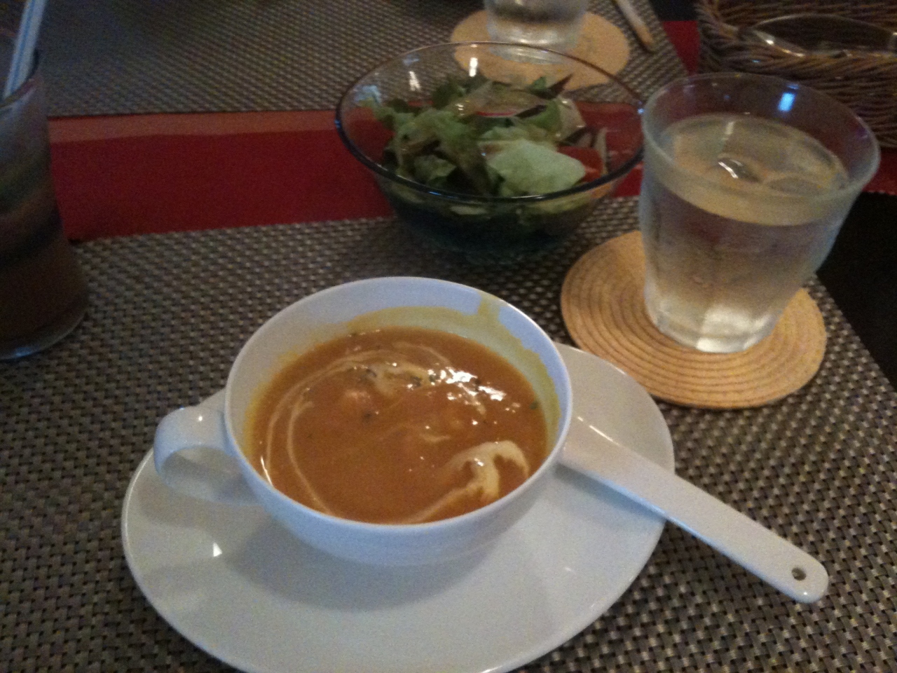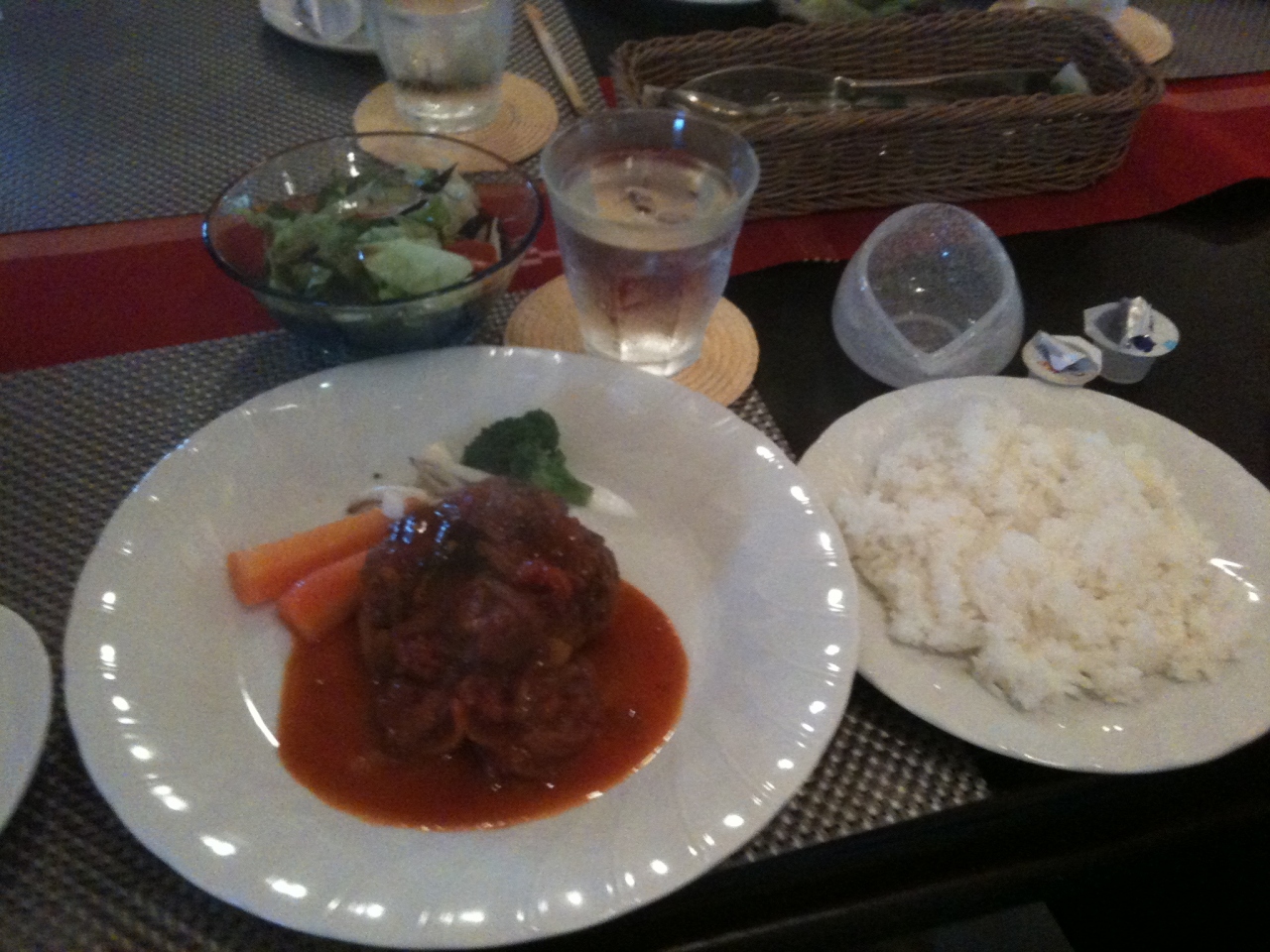 メニューは石垣牛ハンバーグとパンプキンスープ。