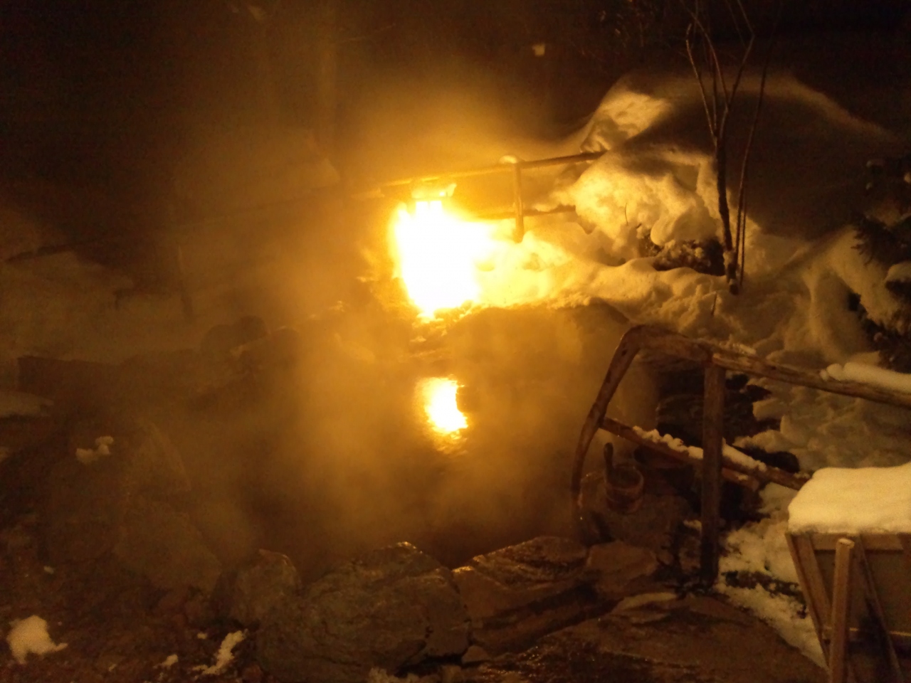 灯りを消して入る、雪見風呂もサイコ―。