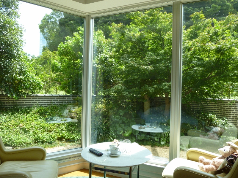 東京タワーのすぐ近く、芝公園に隣接しており、東京とは思えないほど緑豊かで落ち着いた環境のホテルです。宿泊したのは2Fのガーデンスイートでしたが、ガラス張りの洋室と落ち着いた和室、それからその間にはジャグジー付バスルームがあり、いずれも庭に面して我が家のようにくつろげます。部屋はまだ新しくとても清潔。アメニティ類も充実しています。1Fにはコンビニがあり、焼きたてのパン等を販売しています。