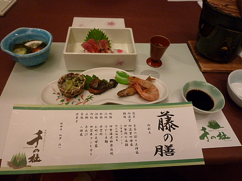 食事は大広間のような所で、楽しみにしていた伊勢エビも可愛いサイズでしたが、