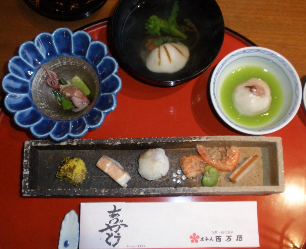 紅葉で真っ赤に染まった温泉ホテルで、紅葉館の露天風呂付大浴場は硫黄の匂いがしていた。朝風呂の千秋閣は広々とした大浴場でした。夕食は前沢牛の陶板焼き付きの懐石風御... もっと見る
