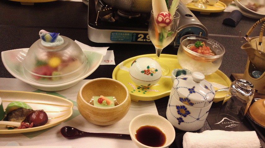 宴会で利用したのですが、夕食は畳の部屋でなくテーブルに椅子。料理も普通の旅館の宴会料理よりもちよっとお洒落な女性を意識したような料理です。