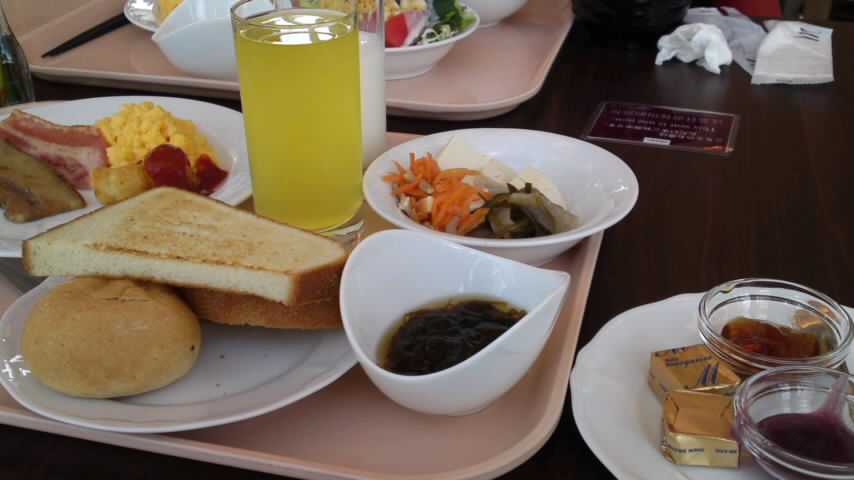 - 朝食メニュー。期待しすぎたせいか、日本のどこでも同じながっかりメニュー。