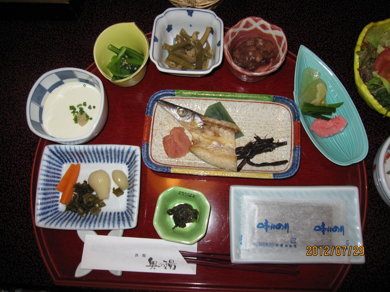 結局、7時ちょっと過ぎに到着したのですが、遅かったのにもかかわらず、きちんと夕食の準備もしてくださいました。又、さらに、100キロ離れた場所から、親類が訪ねてきてくれたのですが、夕食中だったので、食事が途中で中断してしまい、旅館の方へ、大変な迷惑をかけてしまいました。しかし、全部片付けないで、残してくださっていて、びっくりしました。一番嬉しかったのは、具合いの悪かった娘のことを気遣って、みなさんがお優しいお声かけをしてくださいました。娘のために、おかゆを準備して下さり、おかげさまで、食事をとることができました。翌日の朝食でも同様におかゆ対応をしてくださいました。