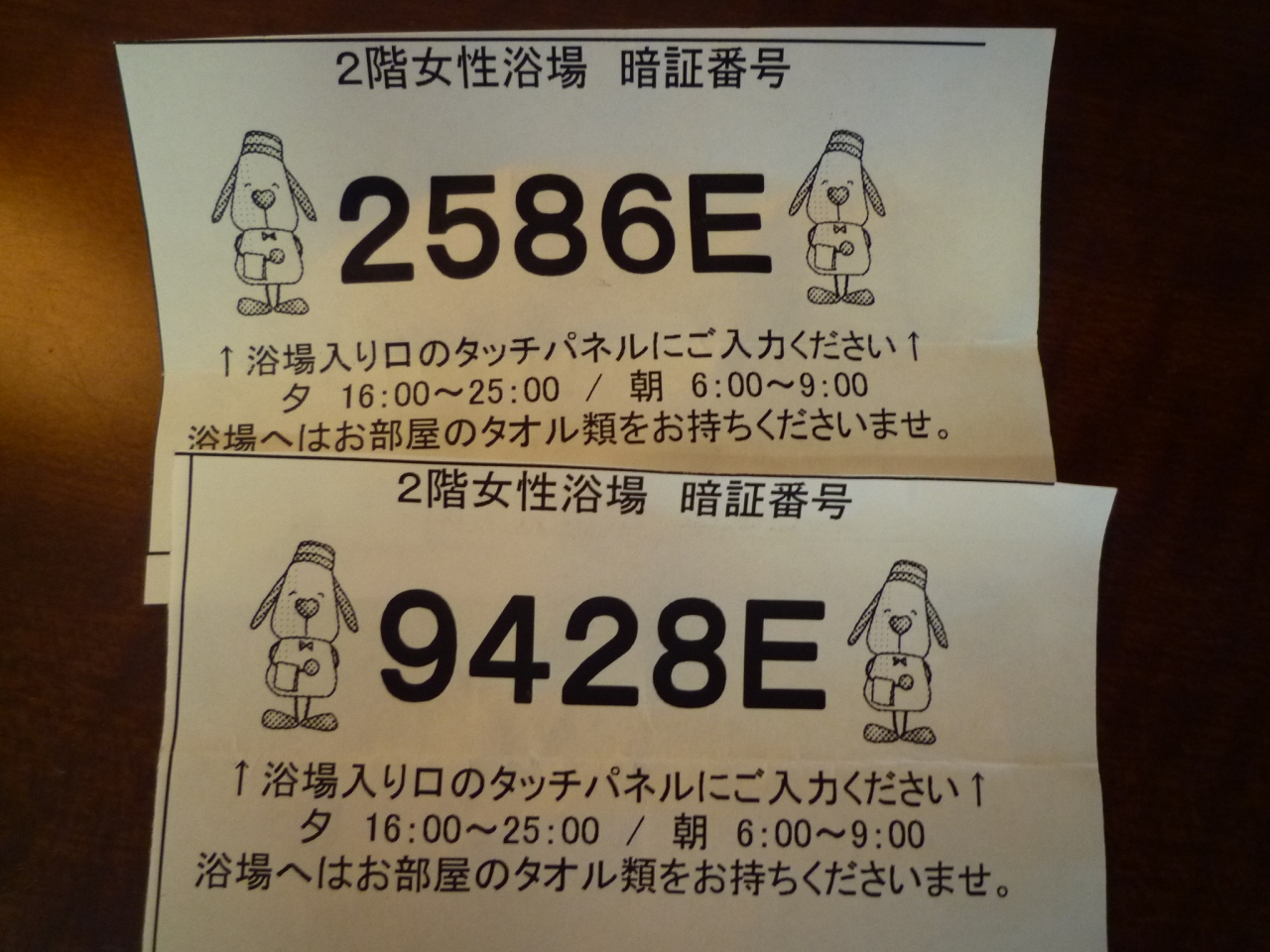 部屋以外にも浴室が有り、女子浴室は暗証番号を入力して入るので