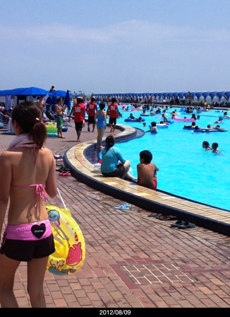 子供がいる方は子供が特に好きそうな種類のプールのそばを予約されると、寝転びながら監視出来ます。パラソル等の予約は1週間前から専用ページで必要ですが、ここだけの話し、波の出るプールのそばには無料のベンチがあってしかも誰も利用していないので穴場です。傘が無いので暑いのですが・・・。ちなみに石垣に座ると監視員さんに怒られます。