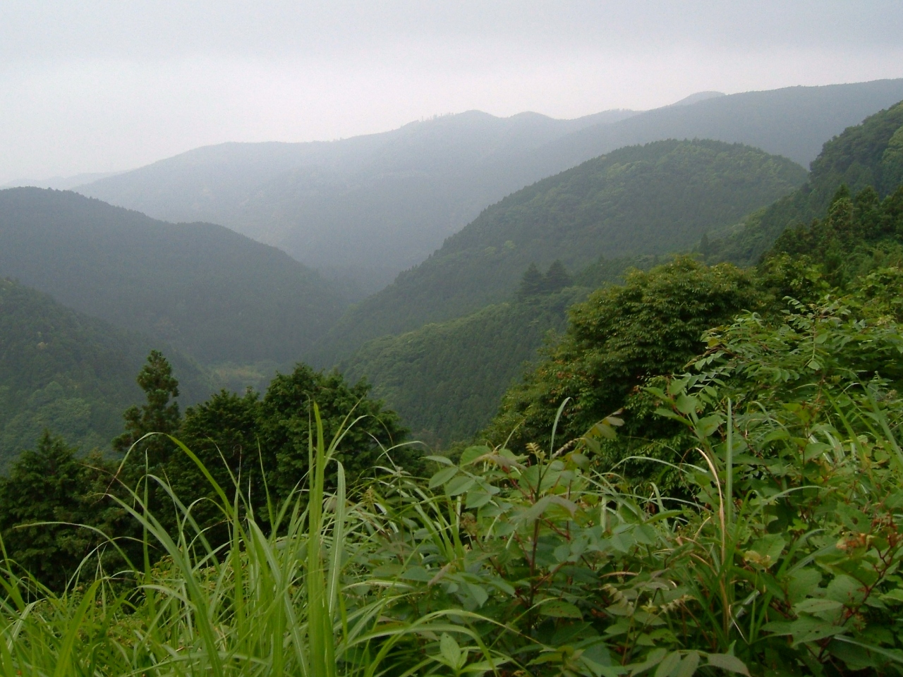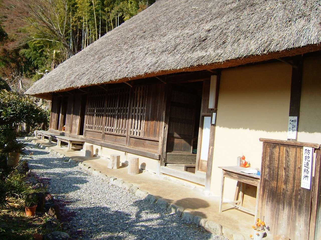 周りは山で緑と自然がいっぱいです、旅人は山の向こうの吉川の奥のカワセミ湖、重要文化財、江戸時代からの旧家友田家、山の中腹にある限界集落、平家の落ち武者の山郷、