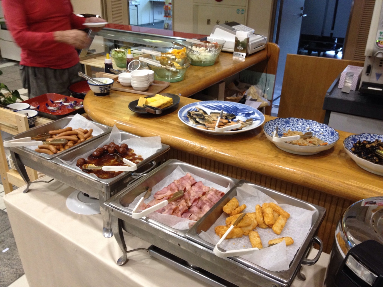 朝食は1Fで取るのですが、まぁ普通のバイキングです。ただ、パンはホテルで焼いているらしく、なかなか美味しい。販売もしているみたいです。