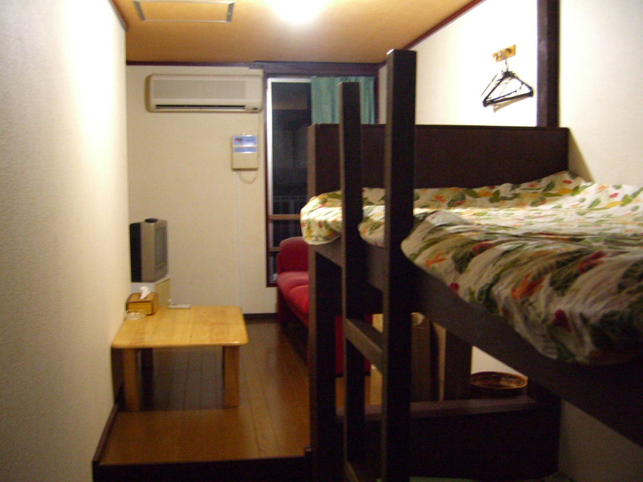 牧志駅より徒歩15分、国際通りから徒歩10分程のところにあり、国際通りから入るとアーケードの端にあります。アーケードは暫く歩くと営業していない店舗が並んでいて夜は、ひっそりとして不気味な感じがありました。古いビルの中にありますが南国のジャングルゾーンの雰囲気になっています。畳の談話室で旅人が交流を深められます。トイレは綺麗とはいえないです。風呂はなくシャワー室になっており屋上にあります。屋上から周辺のビルしかみえず景観はあまり良くないです。個室に泊まりましたが綺麗に整備されTVもありました。