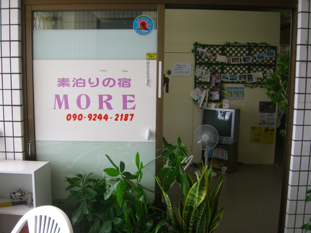 離島桟橋からは少し遠いので車で送迎していただきました。宿の方も親切で格安の素泊まりの宿です。バス、トイレ、キッチンは共同です。自炊も出来ます。個室に宿泊しましたがベットと扇風機ぐらいしかなく狭いです。マックスバリューが近くにあります。宿は2Fで階段上がったところにテーブルと椅子があり、風が入り気持ちが良かったです。