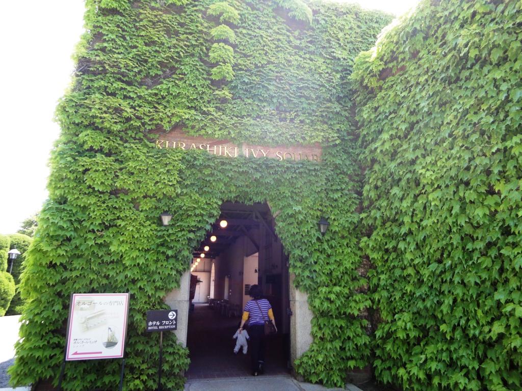 かつての若者にとって、倉敷のアイビースクエアといえば憧れの存在でした。アイビーが流行っていた時代、名前もおしゃれだし、白壁が美しい倉敷の美観地区にあって、彼女と一緒に泊まりたいと夢見たものでした。といっても、当時の若者は大半が貧乏。周囲に夢を実現したヤツは1人もいなかった。そんなアイビースクエアを初めて訪れました。1889年築の倉敷紡績の工場を改造してオープンしたのが1973年。新幹線の岡山開業に合わせたといいます。天井の高い平屋の工場に床を造って2階建てとし客室にしたそうです。広々としたフロントは今でも十分おしゃれですが、2階建ての客室は高さがない分、ちょっと不満かもしれません。ちなみにアイビーとは、ツタの意味。確かに多くの建物がツタに覆われてました。