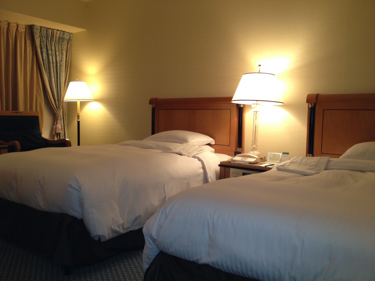 シングルの禁煙室を予約したのだが、当日満員ということで、ツインの禁煙室にUPしてくれた。