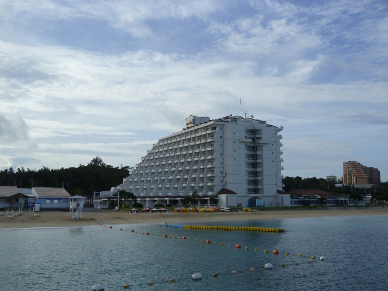 夏休みの家族旅行で宿泊しました。中央に大きな吹き抜けのあって、採光が良くリゾートホテルらしい雰囲気です。部屋もきれいであまり古さを感じませんでした。ビーチ、プールもきれいで良く整備されていて子供が遊びやすい環境です。朝食は多人数をうまくさばいている感じで、ストレスなくおいしく食べられました。近くにコンビニ、居酒屋もありで、旅行を満喫できました。隣にレンタカー店もあるので、空港からホテルまではリムジンバスで来て、ここでレンタカーというのもありです。