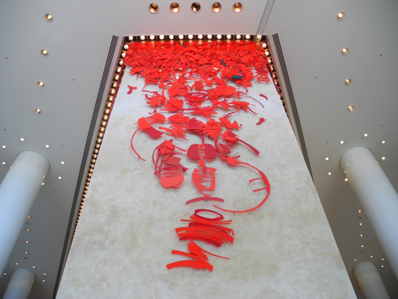 ウェスティンホテル淡路の正面玄関から先ず、最初に目に入るのがこのモニュメントです。天井まで6メートルぐらい有り、とても迫力満点です。私には、紅葉の落ち葉の様にも見えますし、色々と考えてみましたが、ぜひ、一度、見てください。
