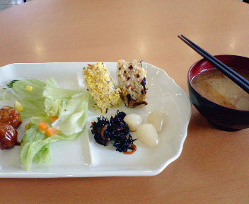 鳥取らしく、朝食にラッキョウが出てきたのでちょっと得した気分でした。
