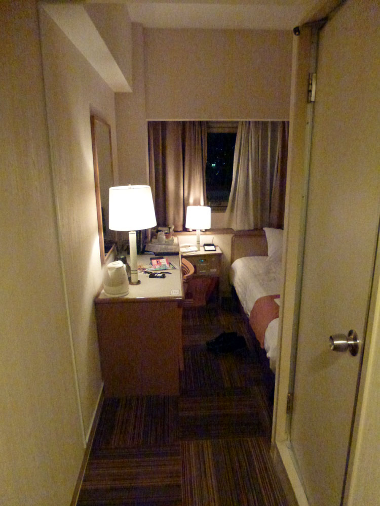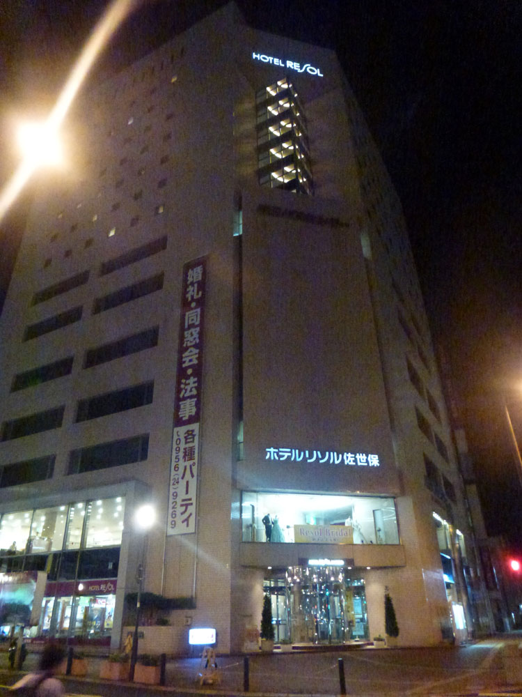 佐世保のバスターミナル上に立つホテル。新しいホテルをイメージしていましたが、チェックインして部屋に向かうとそれなりに古い感じでした。