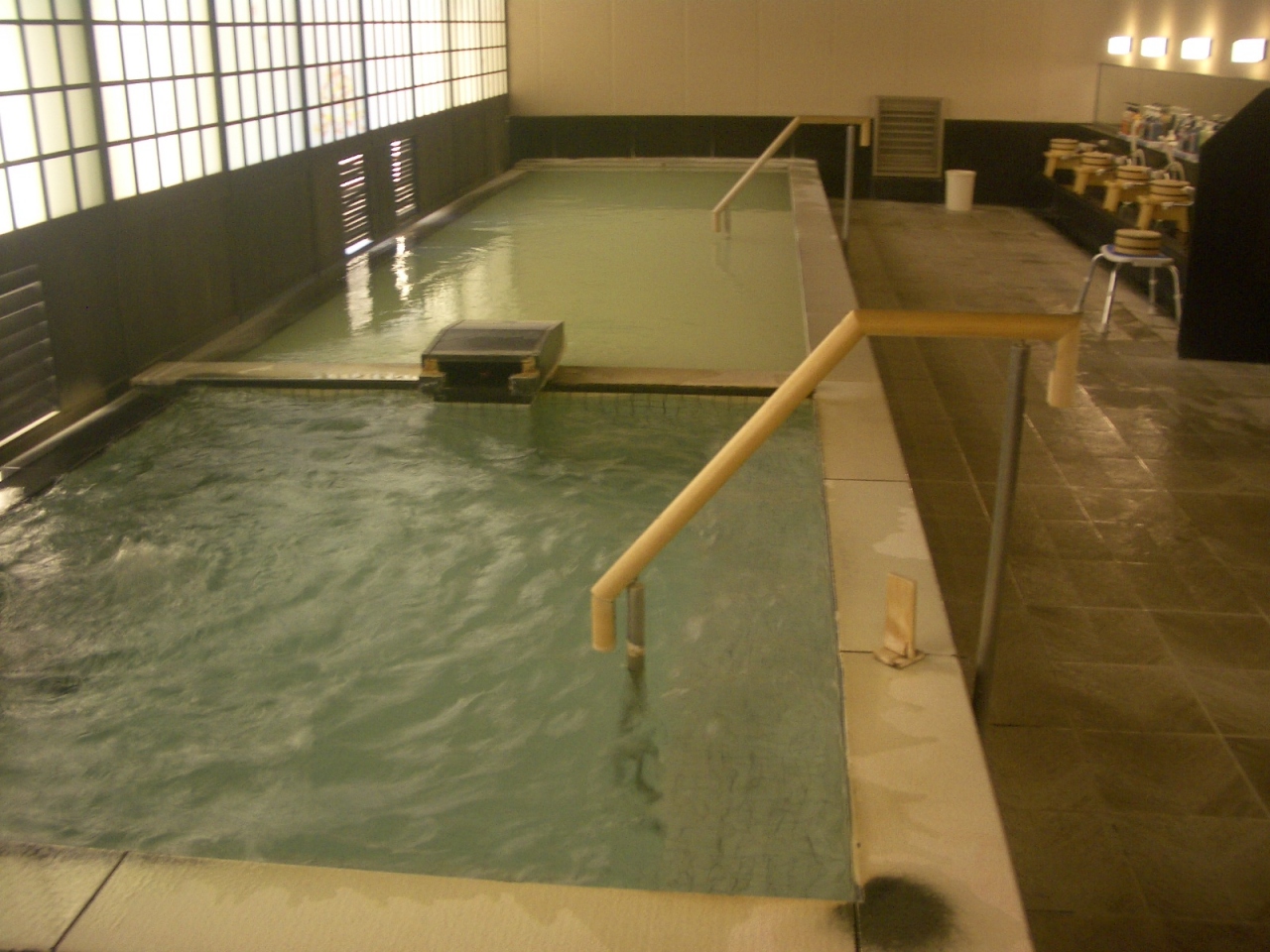 今回は有料の貸切風呂も利用しましたが、とても広くて、大浴場としても使えるくらいの広さに満足でした。この日の昼は、白濁色、夜遅くの大浴場では、緑がかったお湯でした。