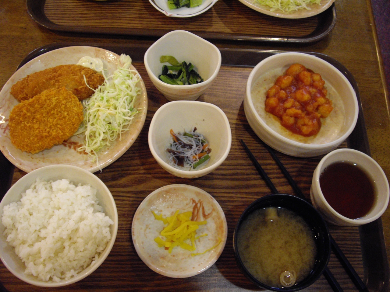 このご時勢それも仕方ないかと思うけど、一緒についてきた副菜の酢の物、青菜、漬物がカピカピに乾いていて半フリーズドライ状態、しかも、盛り付け方も誰かの食べ残しでも持ってきたの?というような乱雑ぶり。