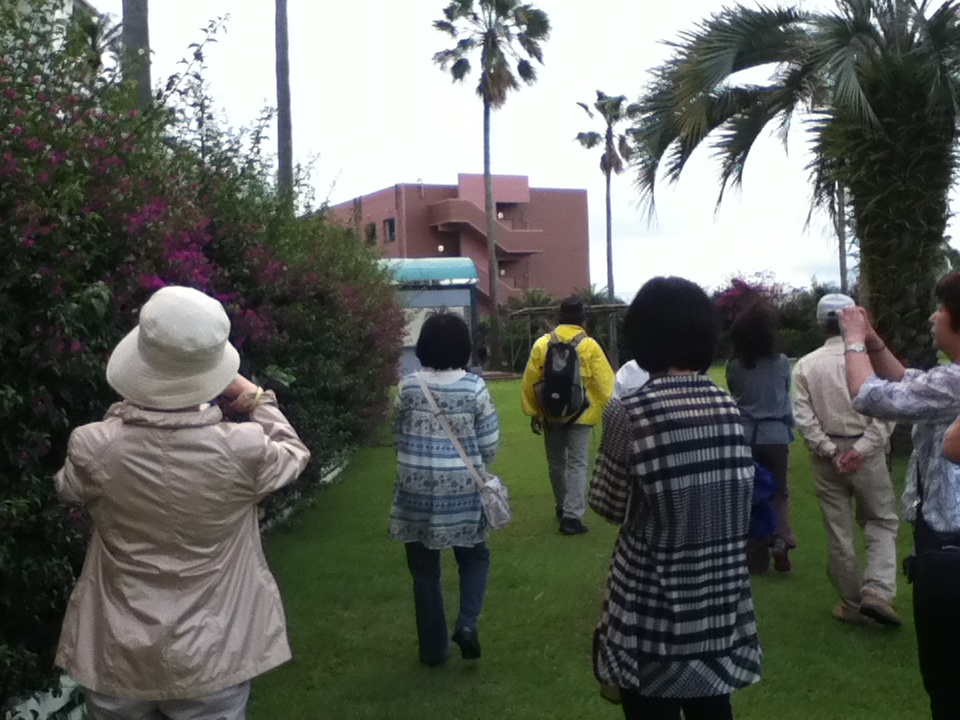 パックツアーで屋久島へ行くコースで、ここのホテルに2連泊しました。たくさんグループが泊まっており、グループの扱いにはとても慣れていて特に待たされるようなことはあありませんでした。毎日?夜8時からロビーで地元ボランティアの方の語り部でいろいろな話が聞けましたし、朝は同じくボランティアの方の案内でホテルの広い庭の植物などを説明していただき、朝食前の良い散歩になりました。こういったサービスは嬉しいものです。お風呂も指宿温泉といえば砂蒸し風呂、ここのホテルは自社で砂蒸し風呂を行っているので、わざわざ外へ出ていく必要もなく、楽して砂に埋もれることができました。