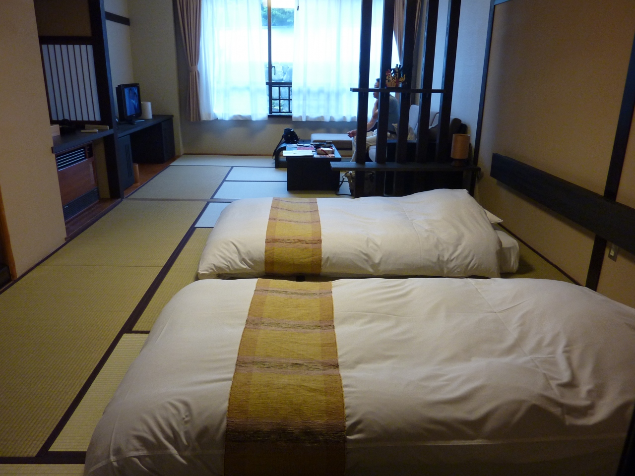 - 本館はリニューアル済み。畳上にソファとマットレス使用。