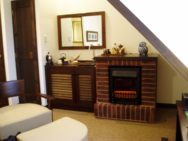 お部屋も暖炉があったりします、落ち着ける空間です。