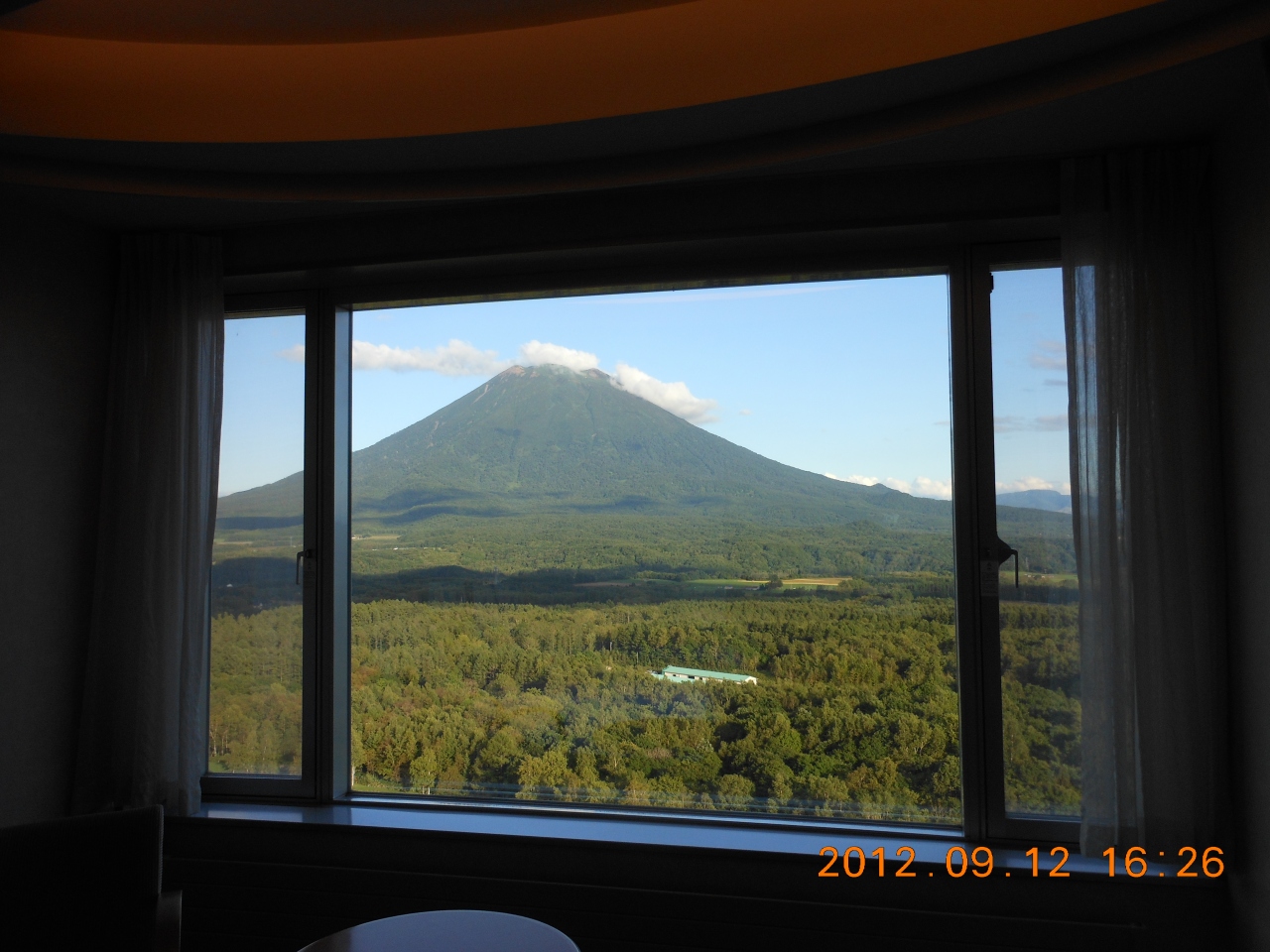 部屋に入った途端、窓より羊蹄山がくっきり、案内係りの人も今日は本当にラッキーとの事。