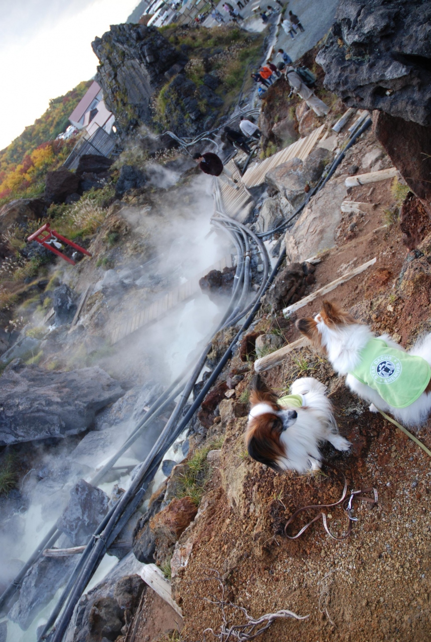 2010年に最初に訪れた時に栗駒山荘の露天風呂「千人風呂」からの栗駒山の紅葉が素晴らしかったので、翌年の再訪では、駐車場裏手の紅葉散策をしたら、偶然源泉を見つけました。