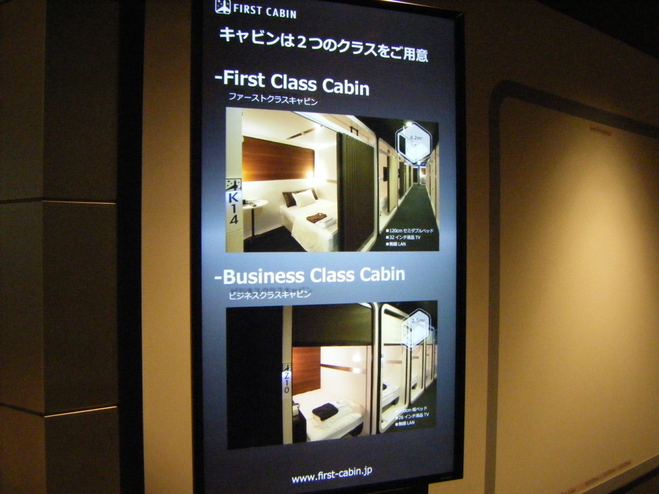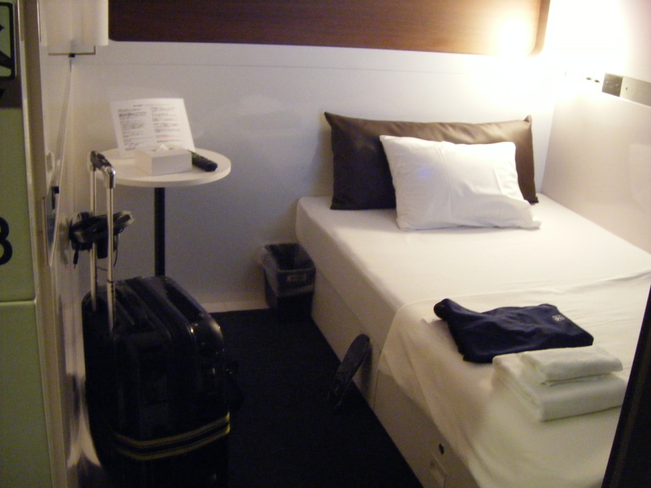 羽田空港内にあるカプセルホテルです。部屋は2タイプあり今回は多少広めのキャビンを選択しました。広々ベットに32インチの液晶テレビ、開放感ある天井で普通のビジネスホテルと遜色無しです。ただし、ドアはなくアコーディオンカーテンで仕切られているだけですので、外の音(人が歩く音、他人のいびき等)はよく聞こえます。耳栓の貸し出しもありますが神経質な人は無理かもしれません。大浴場もありますので旅行の疲れもとれる気がしました。何より空港内にあるので、朝一の飛行機の前泊には最高でした。