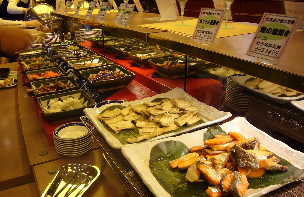 函館市のホテル・啄木亭。ロビーが広い上に、美しい庭があり、かなり高級感のあるホテルです。そんなホテルなのに、安く泊まれるプランが使えたのはものすごくラッキーなこと。夕食バイキングは、ステーキや寿司、刺身ほか、高級食材を使ったものばかり。部屋からは函館山の頂上が見え、眺望もすばらしかったです。