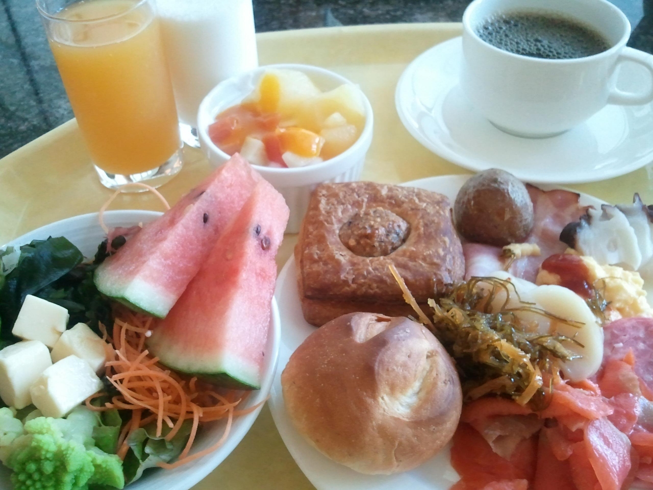 朝の食事バイキングは、レストランから海が見えて、とてもすがすがしい気分になります。