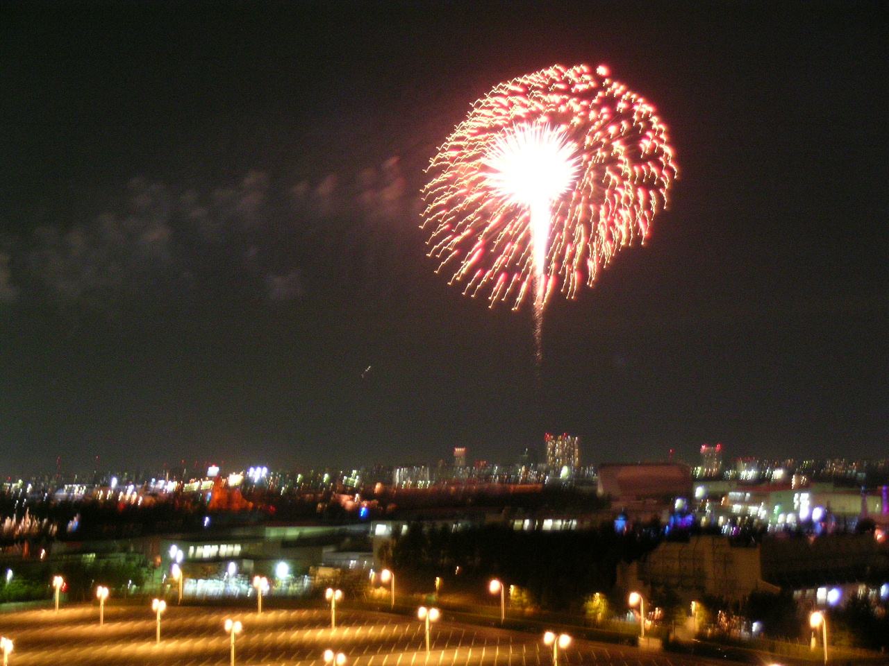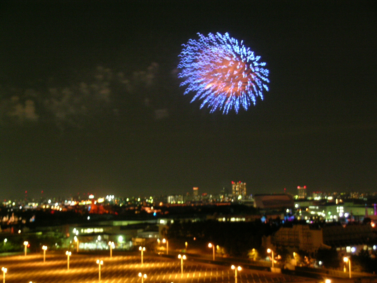 眺望は海側と反対側でしたが、夜の花火はきれいでした。