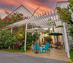 プライベート・ビーチがあり、燃えるような綺麗な夕日が眺められるそうですが、私の滞在中は曇っていて夕日は見られませんでした。ビーチは熱帯魚が沢山泳いでいて、餌をやるとあっという間にたくさん集まってきて指や脚をつつかれたりします。ただビーチはサンゴや岩がゴツゴツしていて素足では痛くて入れません。サンダルか足ひれをつけて海に入らないと怪我をします。