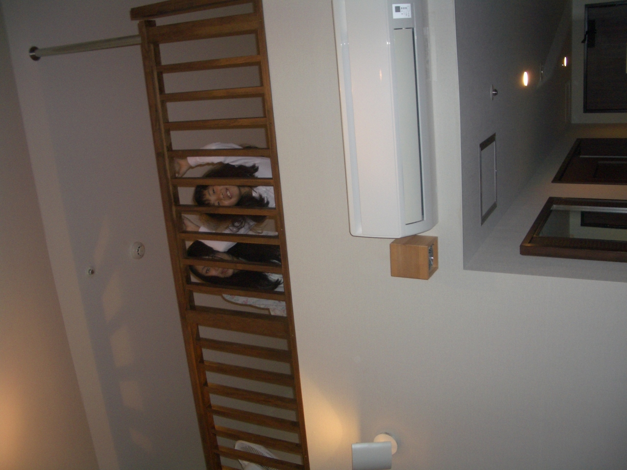 4人だったのでロフト付きの部屋をリクエストしました。ロフトの天井はやや低くフローリングに布団を2つ敷いて寝るようになっています。夏場はクーラーが効きにくいのか、扇風機も置いてありました。小学生と高校生の娘は珍しがって喜んでいましたが、梯子が急で滑りやすいのでお年寄りや小さなこどもは無理みたいです。ホテルのスタッフの勧めで、夜中の3時に起きて屋上のテラスで夜空を眺めました。春先でかなり寒かったのですが、流れ星が何個も見えて感動しました。