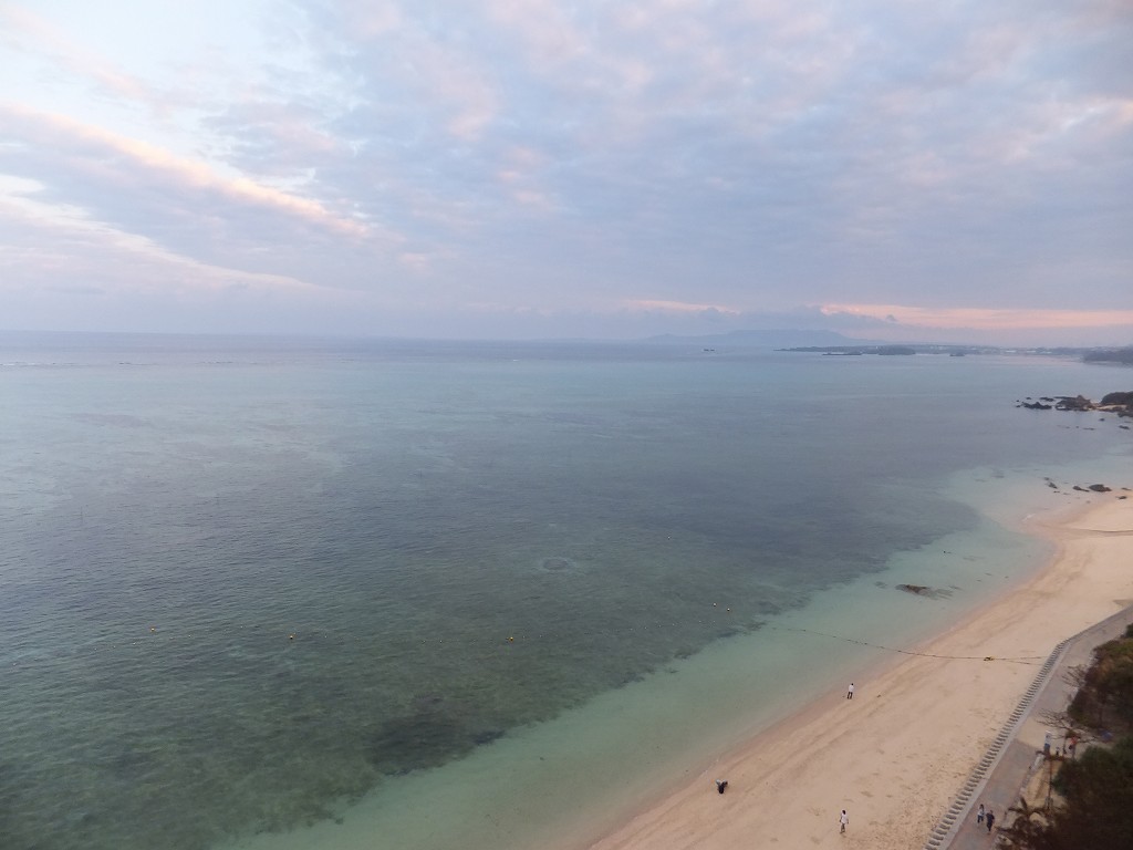 朝食は、日本料理・琉球料理「七福」がおすすめ。特に奥の海を正面に見ることができるテーブルで食べる朝食は、これも最高の気分。