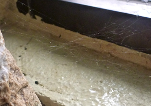 入ってすぐに、小さな岩が飾られていて、そこに蜘蛛の巣・・・・。