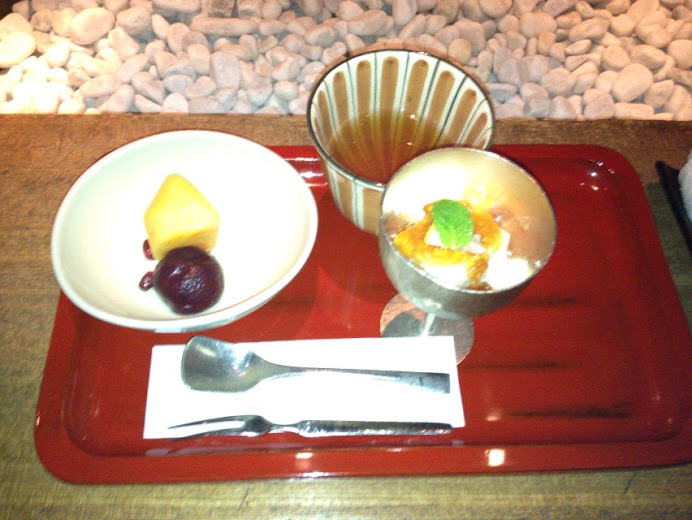 食後には、庭園を眺めながらデザートを別室で食べることになります。この辺りも外国人に人気な理由だと思います。